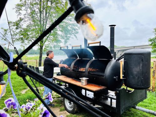 - Het terras op het veld aan het water;